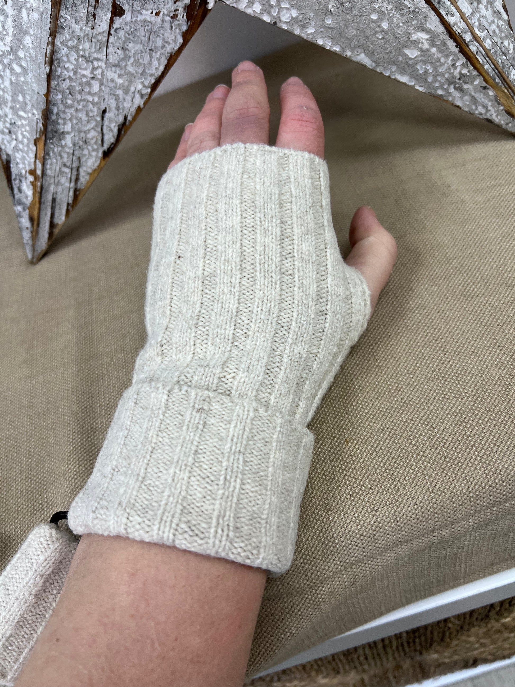 Cashmere Fingerless Gloves - Oatmeal