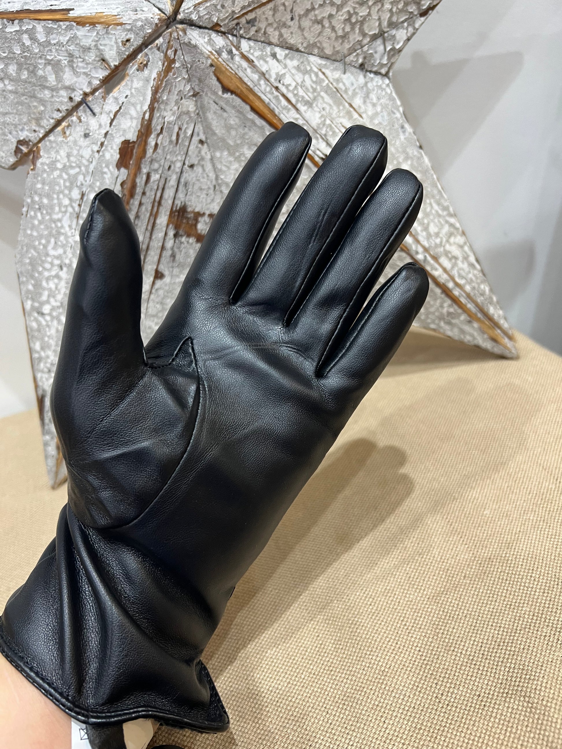 Faux Leather Gloves - Black Star