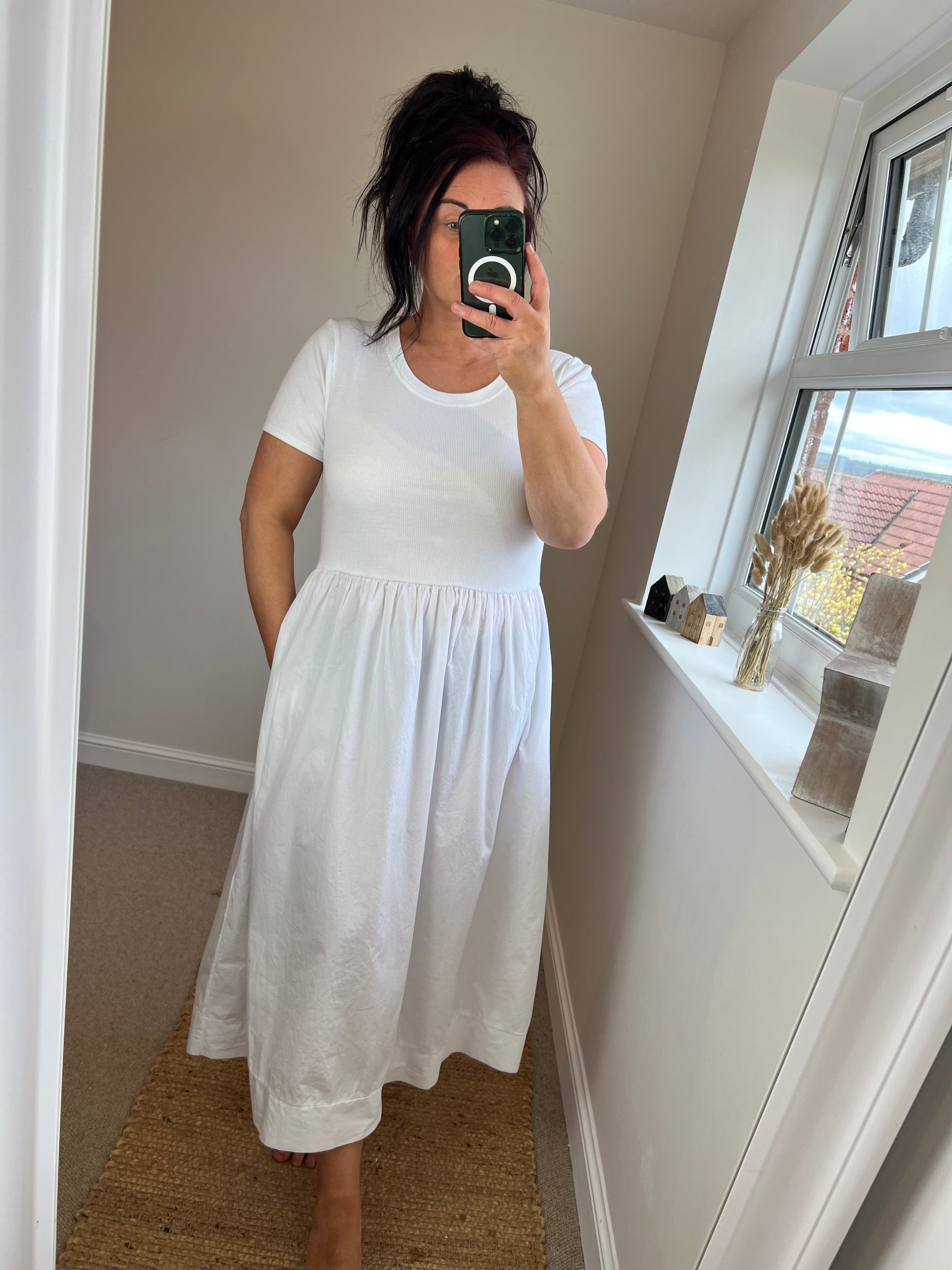 To give you an idea when looking at the photos, the model (Jodie) is 5”6.5 and a size 16.