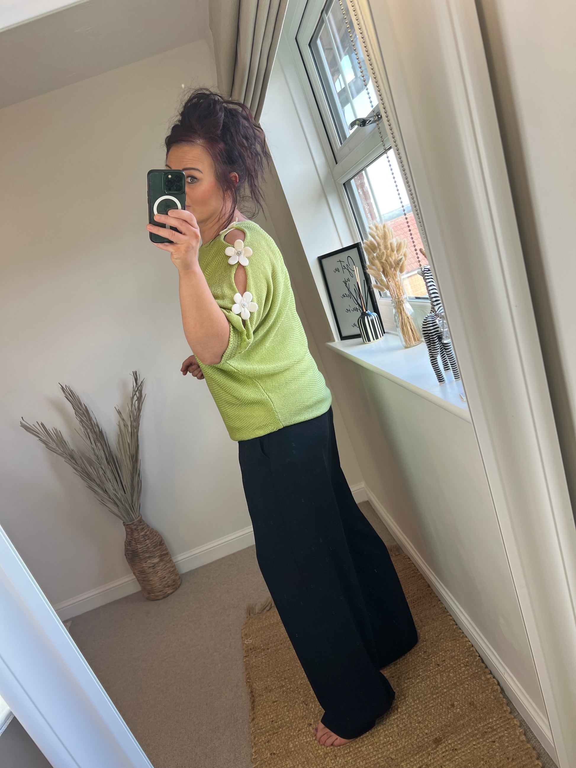Flower Cold Shoulder Top - Green