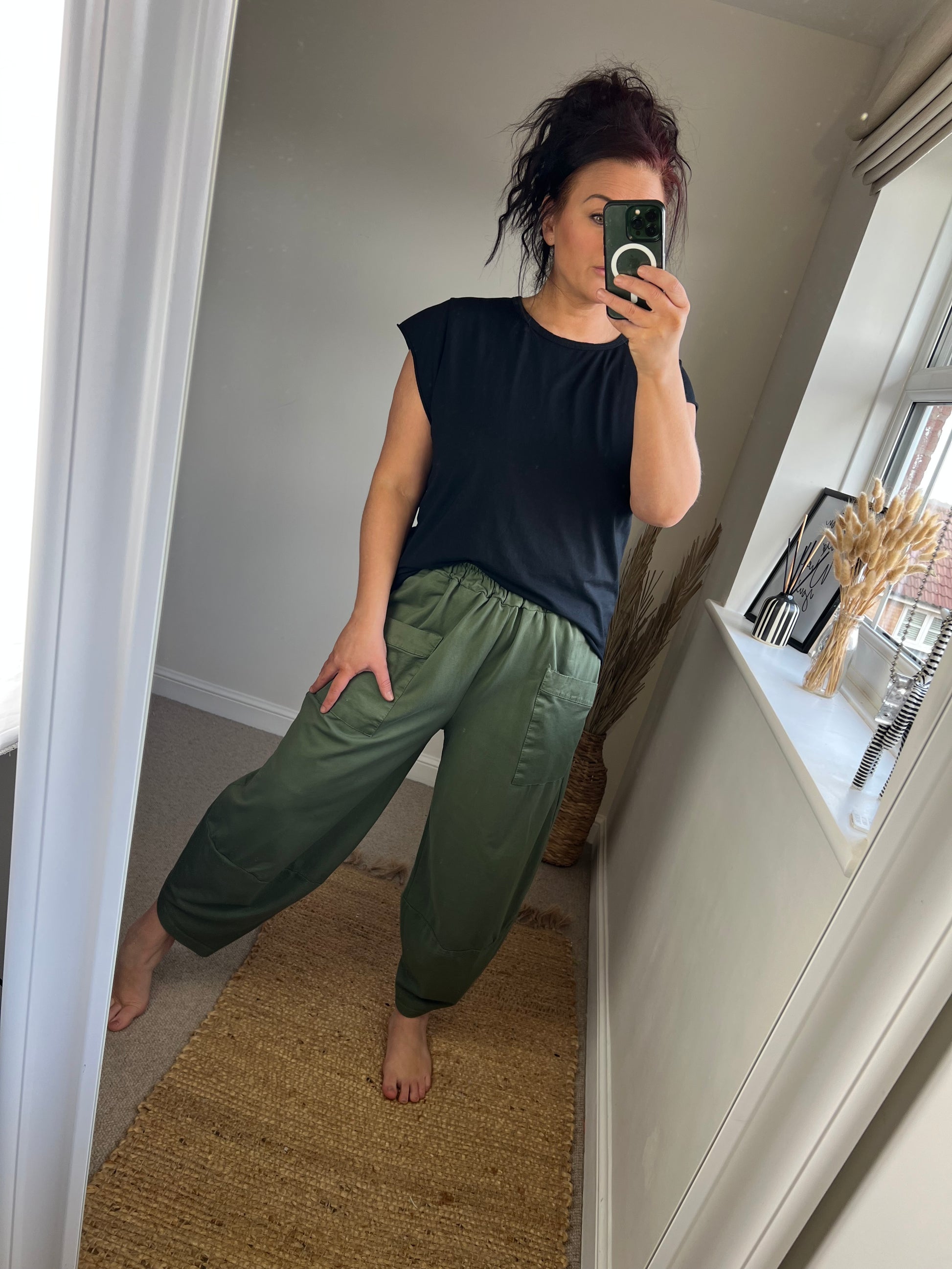 Most of our clothing is one size, so suitable for all shapes and sizes. My motto is “it all depends on how you like your fit and what you feel comfortable and confident in.”
