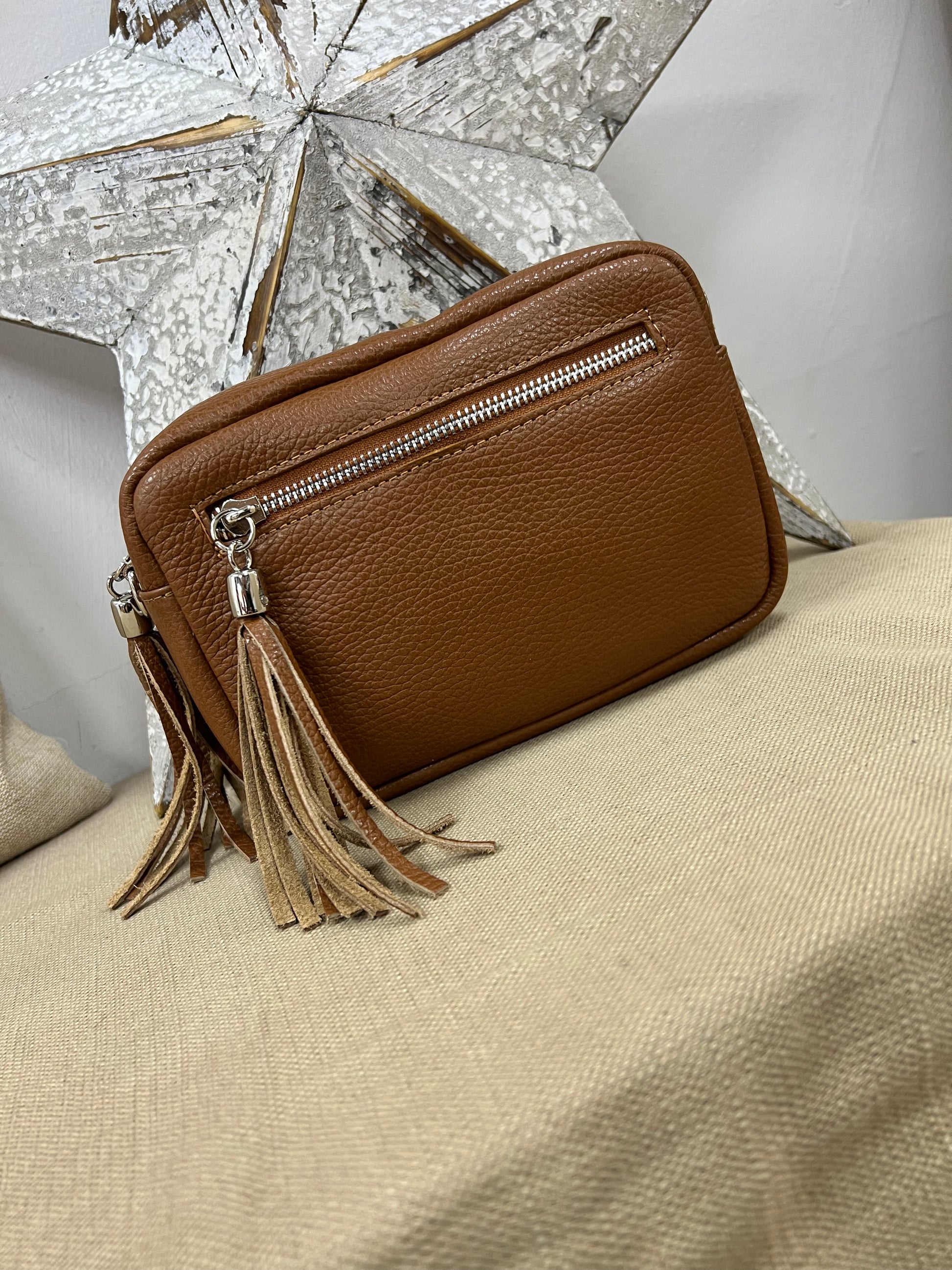 This stylish tan leather bag is ideal for those special occasions when you want to look your best! Perfect for holidays, everyday use, or a night out, it's made from soft, supple leather that's sure to make a statement. Crossbody for comfort and convenience — you won't want to leave home without it!