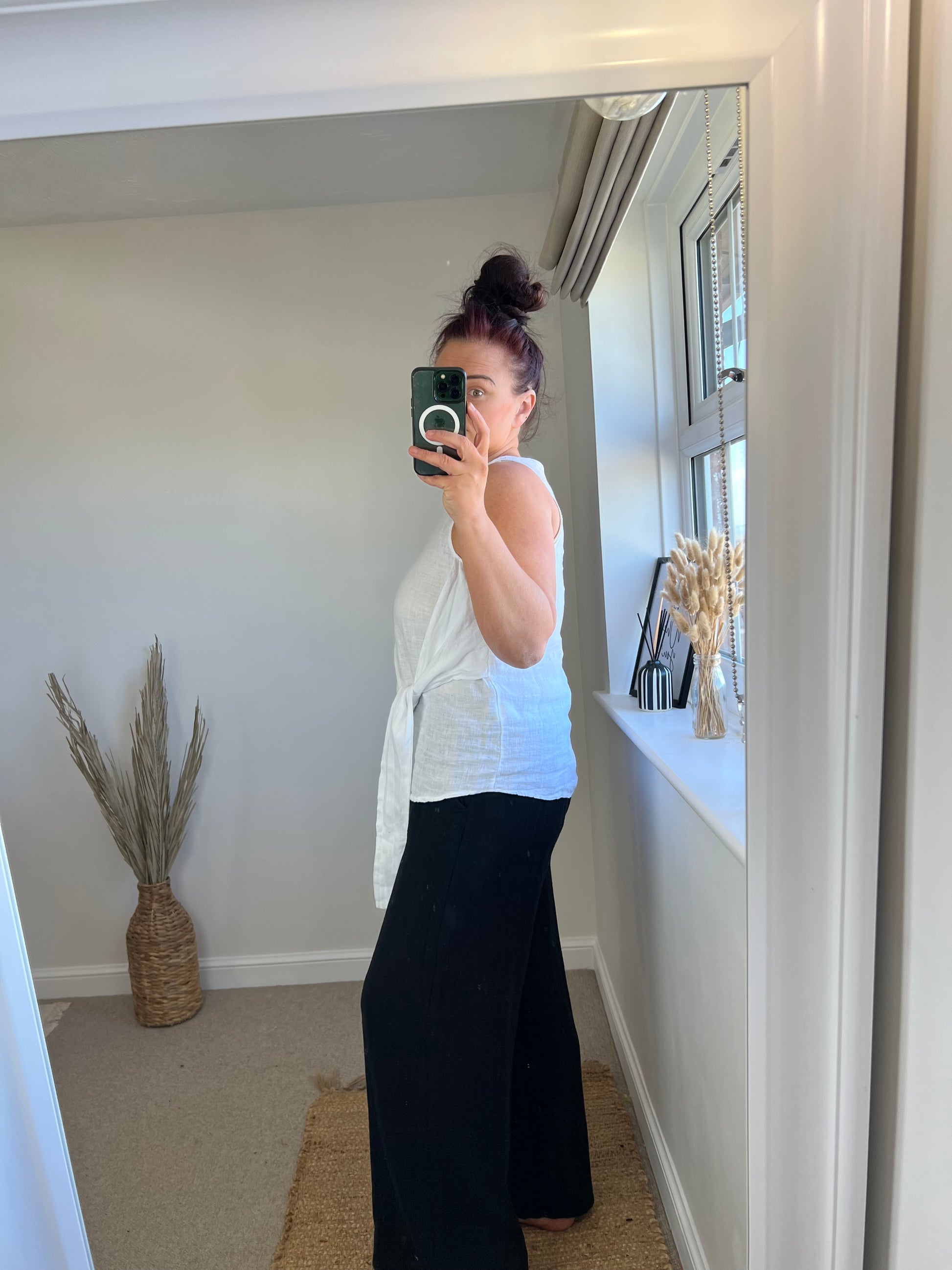 Most of our clothing is one size, so suitable for all shapes and sizes. My motto is “it all depends on how you like your fit and what you feel comfortable and confident in.”