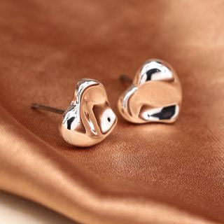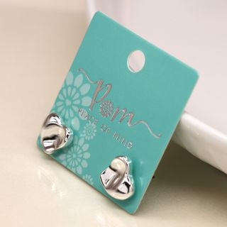 Silver plated heart stud earrings with a gentle wave surface and polished finish.