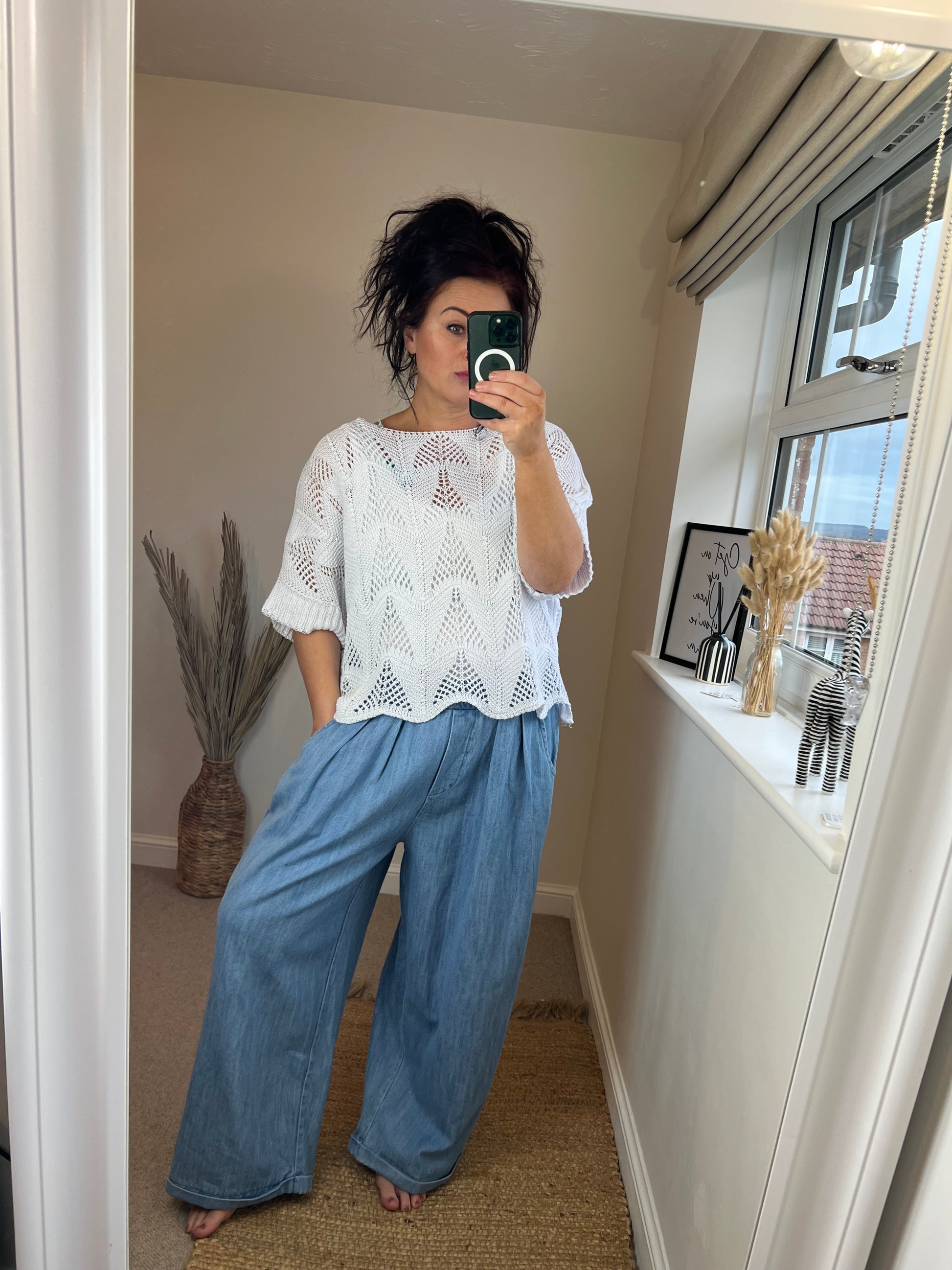 Most of our clothing is one size, so suitable for all shapes and sizes. My motto is “it all depends on how you like your fit and what you feel comfortable and confident in.”
