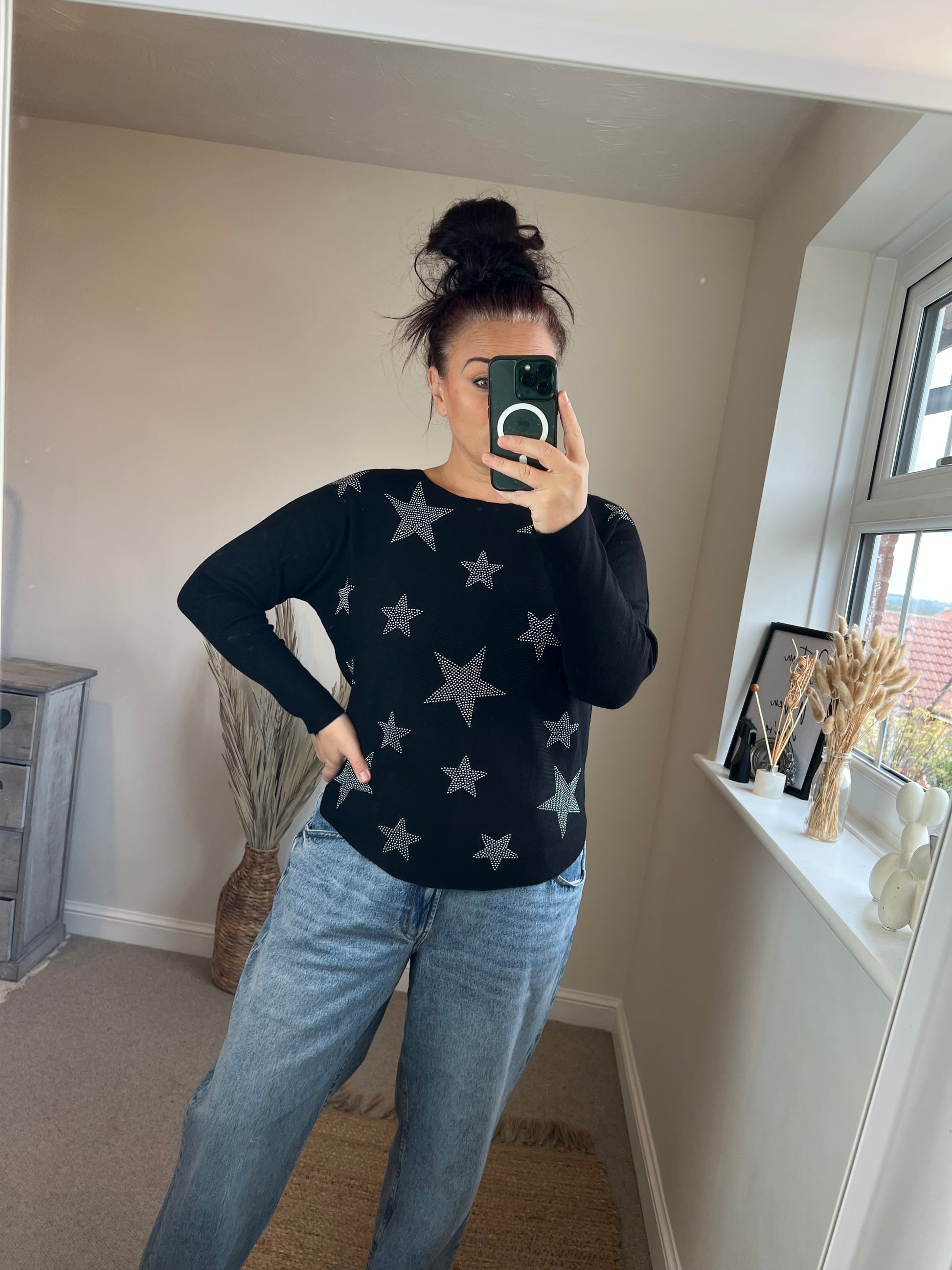 Studded Star Jumper - Black