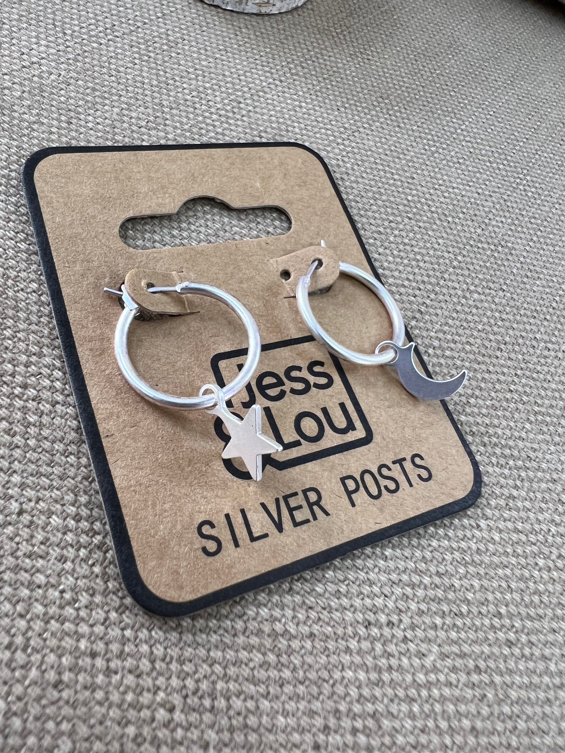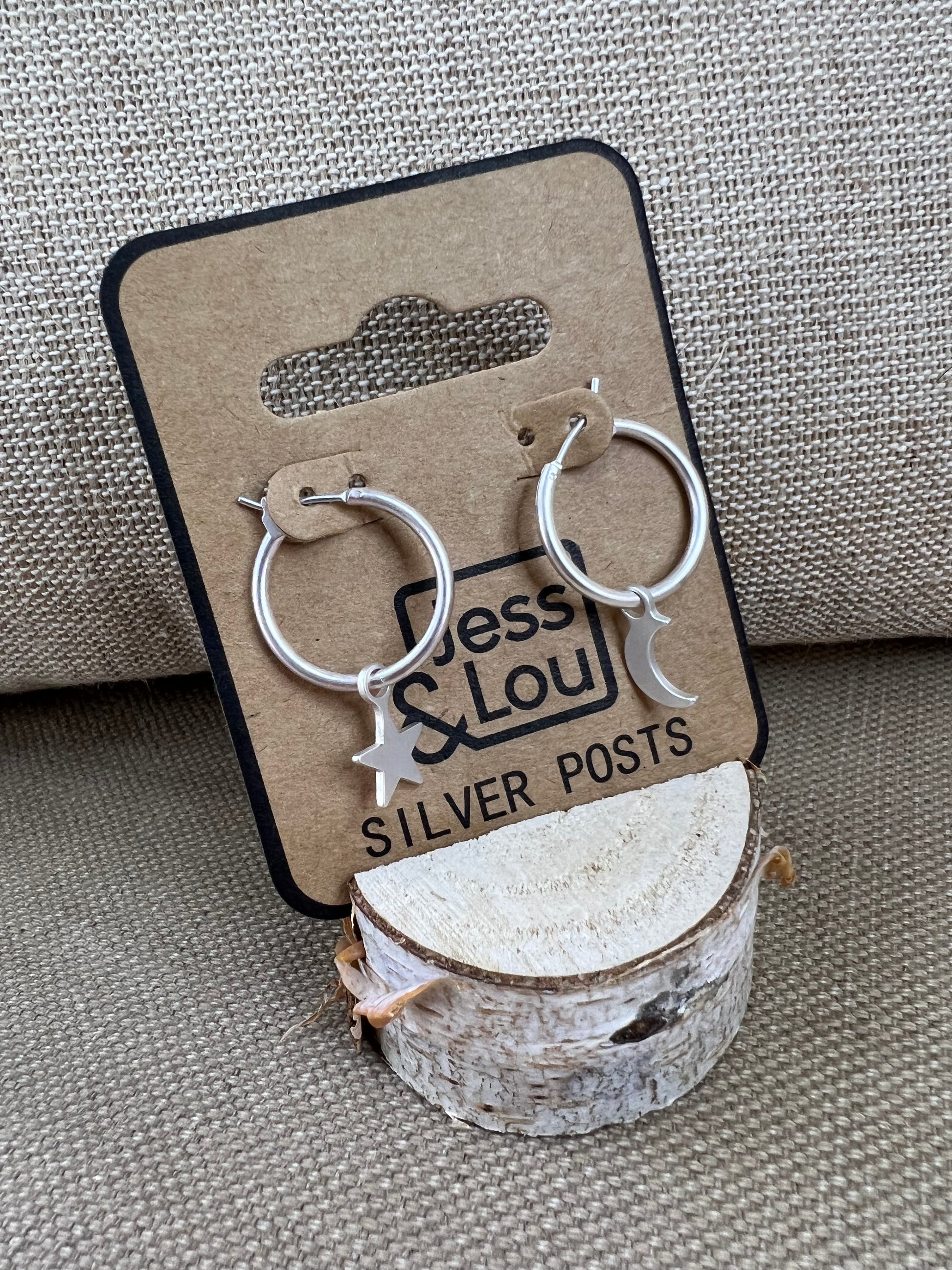 Jess & Lou Silver Plated Huggie Moon & Star Earrings